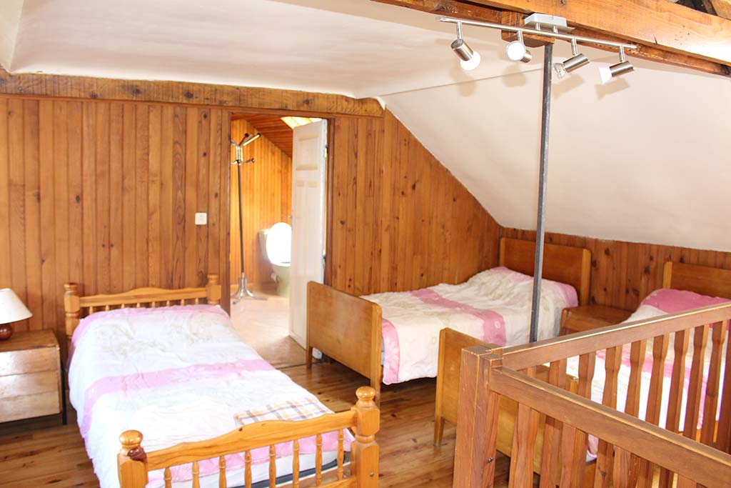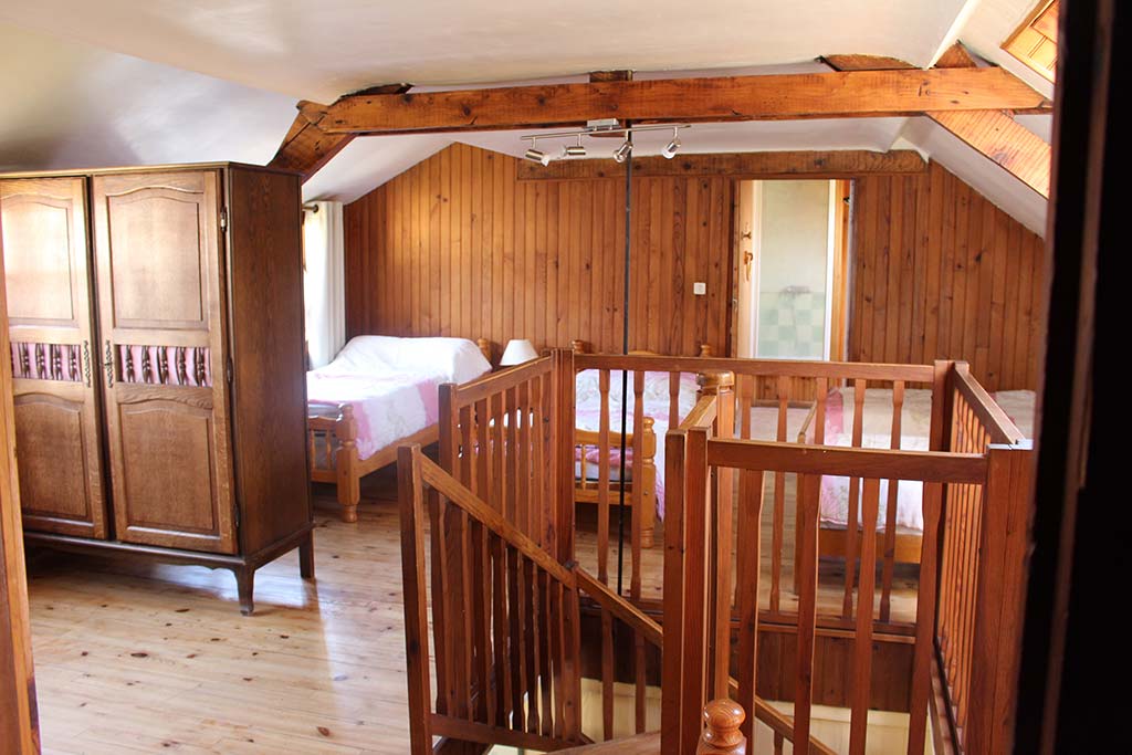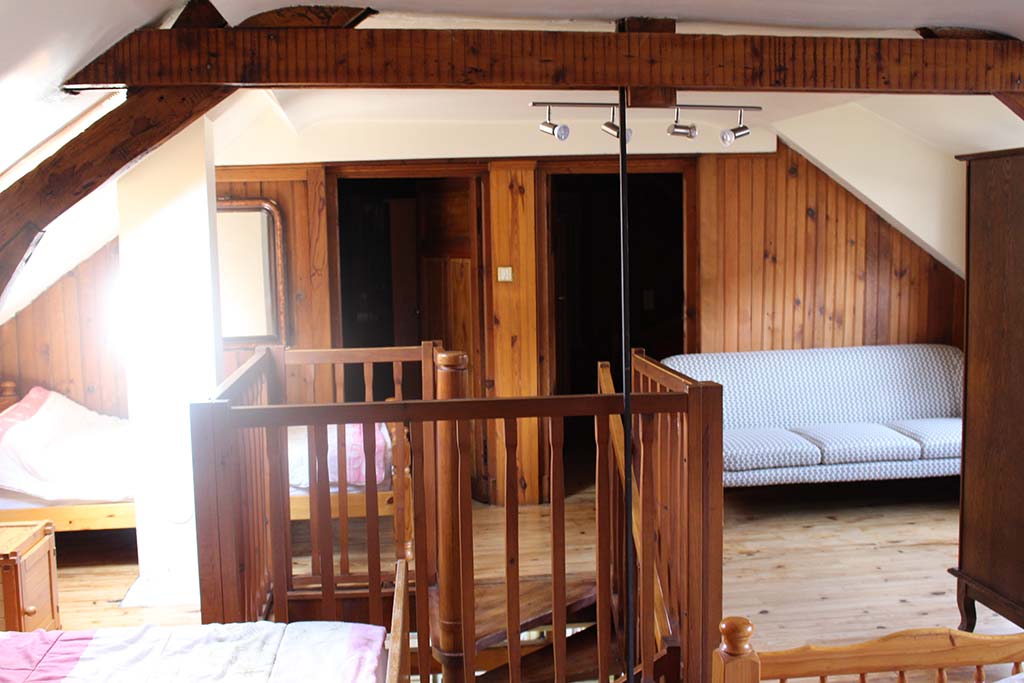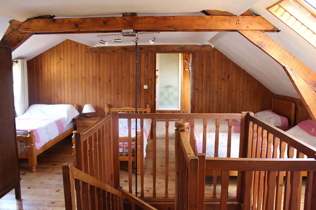 Gîte de grande capacité pouvant convenir aux familles avec un coin spécial enfants, une très grande chambre à l'étage équipée de 5 lits d'une personne.